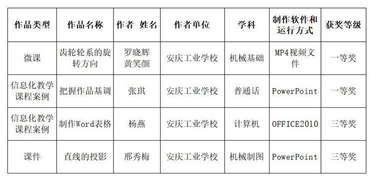 日前,在2019年安慶市教師教育教學信息化大賽中,安慶工業學校推薦的四件作品均獲獎,其中一等獎、三等獎各兩個。