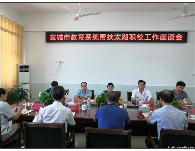 9月3日,宣城市教體局副局長周金保一行7人到太湖職業技術學校對接優質職業院校對口幫扶貧困地區職業教育工作,安慶市教體局職成教科負責人鮑介吾陪同,縣教育局副局長陳英華及太湖職校班子成員、相關處室負責人參加對接交流。