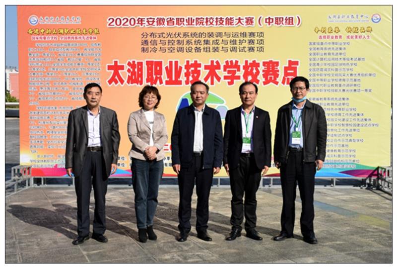 10月10日上午,安徽省教育廳職成教處負責人徐海洋,安慶市高教工委專職副書記、教體工委副書記陳亞玲,安慶市教體局職成教科負責人鮑介吾到賽點視察,徐海洋詳細詢問了大賽的組織籌備、賽項設置、賽事規程及后勤服務等方面的情況,他對全體工作人員以飽滿的熱情、認真的工作、周到的服務,保證大賽如期順利進行表示肯定。