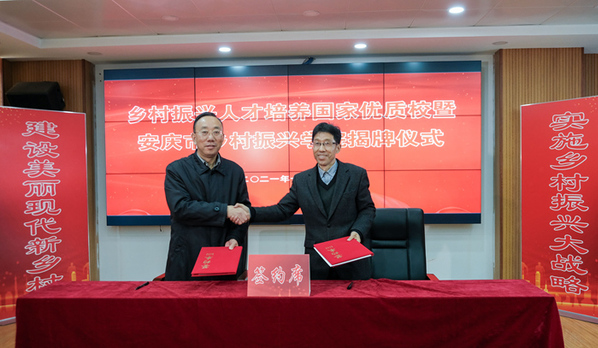 揭牌儀式上,劉克勝、童宏葵、畢明生、吳永生共同為“鄉村振興人才培養國家優質校”和“安慶市鄉村振興學院”揭牌。畢明生、吳永生簽署了《安慶市鄉村振興局與安慶職業技術學院政校共建安慶市鄉村振興學院框架協議》。(文:楊元綱 圖:姚 盈、翟程玲)