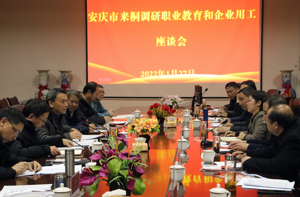 1月27日,安慶職業(yè)技術(shù)學(xué)院黨委書記童宏葵率隊調(diào)研桐城市職業(yè)教育發(fā)展情況。桐城市委副書記金秋明,桐城市人大常委會副主任、人社局局長詹向前,副市長汪杰賢,政協(xié)副主席、教育局局長劉決成,安慶市教體局副局長潘連宇、四級調(diào)研員吳宗亞,安慶職院黨委副書記李克讓及安慶職院校企合作辦、招生就業(yè)處負(fù)責(zé)同志參加調(diào)研。