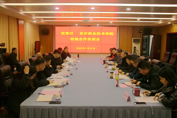 1月21日下午,宜秀區委書記鄭志帶隊赴安慶職業技術學院就深化校地、校企合作事項進行對接洽談。安慶職院黨委書記童宏葵主持座談會并講話。督導員王進、黨委副書記李克讓等出席。