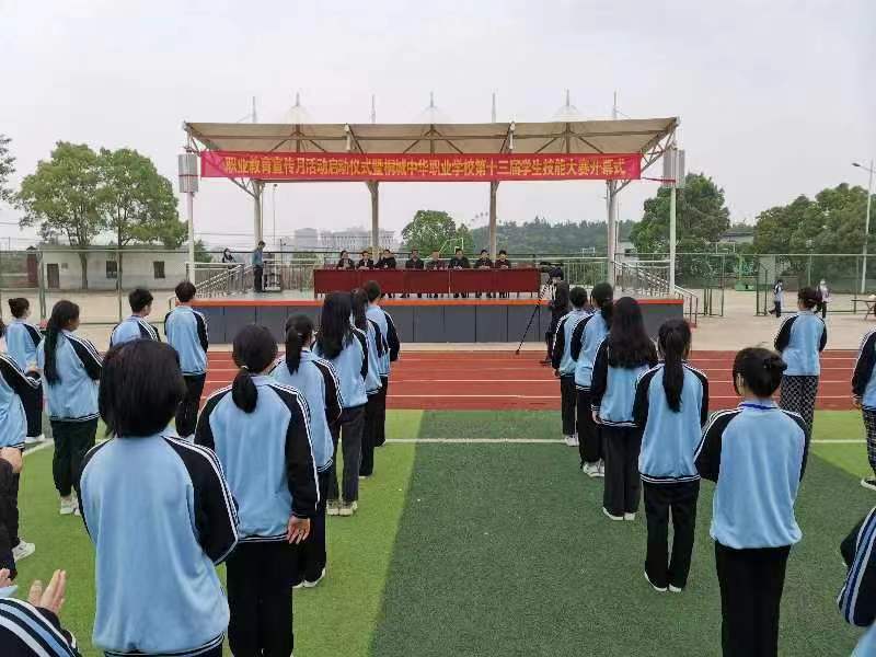 2022年5月12日上午,桐城中華職業(yè)學(xué)校第十三屆技能大賽在學(xué)校體育場拉開帷幕。學(xué)校老領(lǐng)導(dǎo)徐智明,桐城中華職教社理事長張俊,校長張慶國,校黨支部書記徐雄強(qiáng),副校長黃海軍、吳國防,財(cái)務(wù)總監(jiān)江鳳蓮,工會(huì)主席盛愛紅出席開幕式。