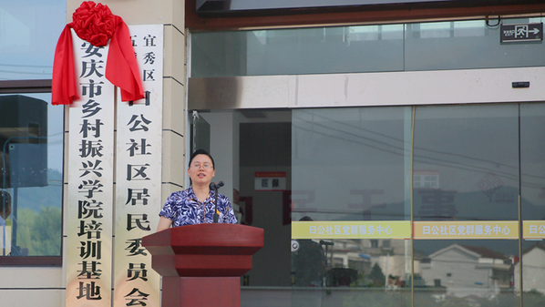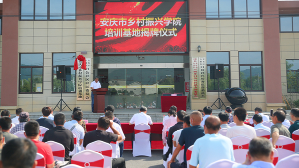 6月9日上午,安慶市鄉村振興學院培訓基地在五橫鄉曰公社區掛牌,同時宜秀區高素質農民培訓班開班。安慶職業技術學院黨委書記童宏葵、副書記李克讓、駐五橫鄉曰公社區鄉村振興指導員王進,市農業農村局黨組成員市委農辦專職副主任戴向前、市鄉村振興局副局長王輝,宜秀區人大常委會主任曹紅斌、宜秀區區委常委、組織部長、統戰部長劉曉麗,副區長張泓等出席儀式并揭牌。