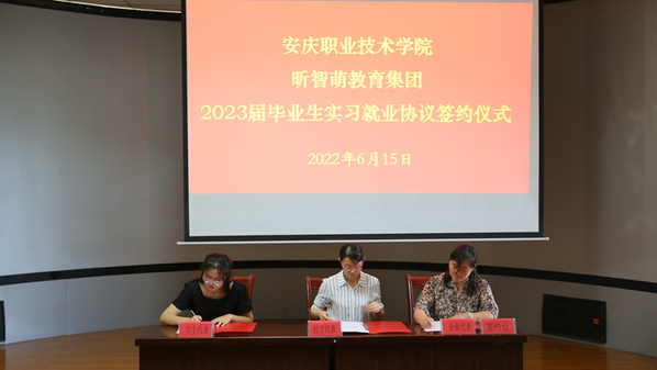 雙選會上,安徽盈創石化檢修安裝有限責任公司、昕智萌教育集團、安徽云霽電子商務有限公司、安徽軒源建設工程有限公司等九家企業與六個二級學院及2023屆畢業生代表進行了三方簽約,簽約實習生人數232人。江汽集團安慶分公司、振宜汽車有限公司、安徽威靈汽車部件有限公司(美的)等七家企業在圖文一樓報告廳進行了現場宣講。