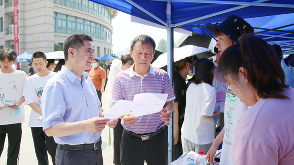 童宏葵等領導在現場與企業及同學們進行交流、詢問,了解學生參與情況。雙選會上,資格審核、展位引導、招聘咨詢、后勤保障、志愿服務井然有序。同學們精心準備自薦求職材料,積極與用人單位交流,了解招聘流程、崗位需求、實習待遇等有關事宜。企業代表耐心、熱情地解答學生的問題,活動現場氛圍濃厚。