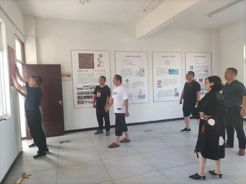 為進一步深化校園傳習所傳承工作,市文化館和校方謀劃建設(shè)“國家級非遺《桐城歌》展館中華職校分館”,文化館(非遺保護中心)工作人員進行實地考察勘測、擬定展覽內(nèi)容、融入多媒體展示、設(shè)計安裝展板等多個環(huán)節(jié),歷時三天完成展陳工作,于89日上午,由桐城市文化旅游體育局黨組書記、局長吳方勝和校方特邀的學(xué)校創(chuàng)辦人徐智明老先生共同為展館揭牌。下一步,桐城市文化館和校方再度推進非遺校園傳承工作,擬在校內(nèi)設(shè)立“桐城市非遺四級代表性傳承人工作室”,此項工作正在籌備中。