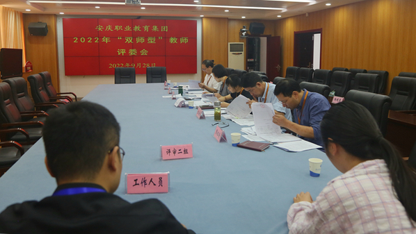 為做好集團中職學校雙師型教師評審工作,按照市教體局、人社局部署要求,根據安慶職教集團2022年度重點工作計劃安排,集團秘書處先后印發《關于報送2022年度“雙師型”教師認定材料的通知》(安職集團[2022]5號)和《關于做好2022年度“雙師型”教師認定工作的通知》(安職集團[2022]6號)兩個文件,明確以《安慶職業教育集團“雙師型”教師認定及管理辦法(試行)》(教體職成〔2021〕28號)文件為此次評審工作認定依據,確定了個人申請、學校初評、集團秘書處評審核定、公示上報等評審認定程序。為確保本次認定評審工作順利開展,集團秘書處制定出臺《安慶職教集團2022年度“雙師型”教師評審工作實施方案》,成立評審工作領導小組,設立評委會,遴選評審專家,確定評審工作階段流程,組建了評審組、會務材料組、監督組、保衛組。