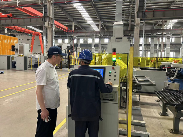 在企業(yè)負責人的引導(dǎo)下,徐英武一行參觀了企業(yè)的生產(chǎn)車間和生產(chǎn)線,實地感受智能汽車制造工廠生產(chǎn)過程中的智能化和科技感,走訪了企業(yè)的食堂、宿舍等生活區(qū)域,詳細了解企業(yè)員工工作環(huán)境、工作強度以及薪資待遇等情況。