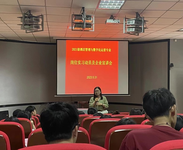 為引導學生做好實習前的各項準備工作,扎實推進2021級學生崗位實習工作順利、有序開展。5月31日和6月1日安慶職業技術學院管理服務學院酒店管理與數字化運營專業與旅游管理專業分別召開了實習動員會和企業宣講會,管理服務學院院長陳穎、副院長李敏、專業建設負責人、輔導員、團隊專業教師及2021級170余名實習學生參加會議。