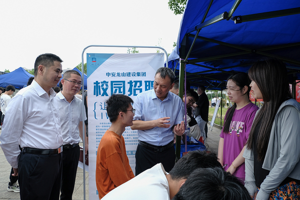 童宏葵首先來到安慶中安龍山建設集團有限公司宣講臺前,仔細詢問該公司用工需求情況,當得知該公司與安慶職院長期開展專業共建和人才培養,目前還有10余名該校歷屆畢業生在該公司工作時,非常高興,對前來應聘的實習生說:目前建筑行業高質量的就業崗位緊缺,希望同學們把握機會,選擇優質企業發展。