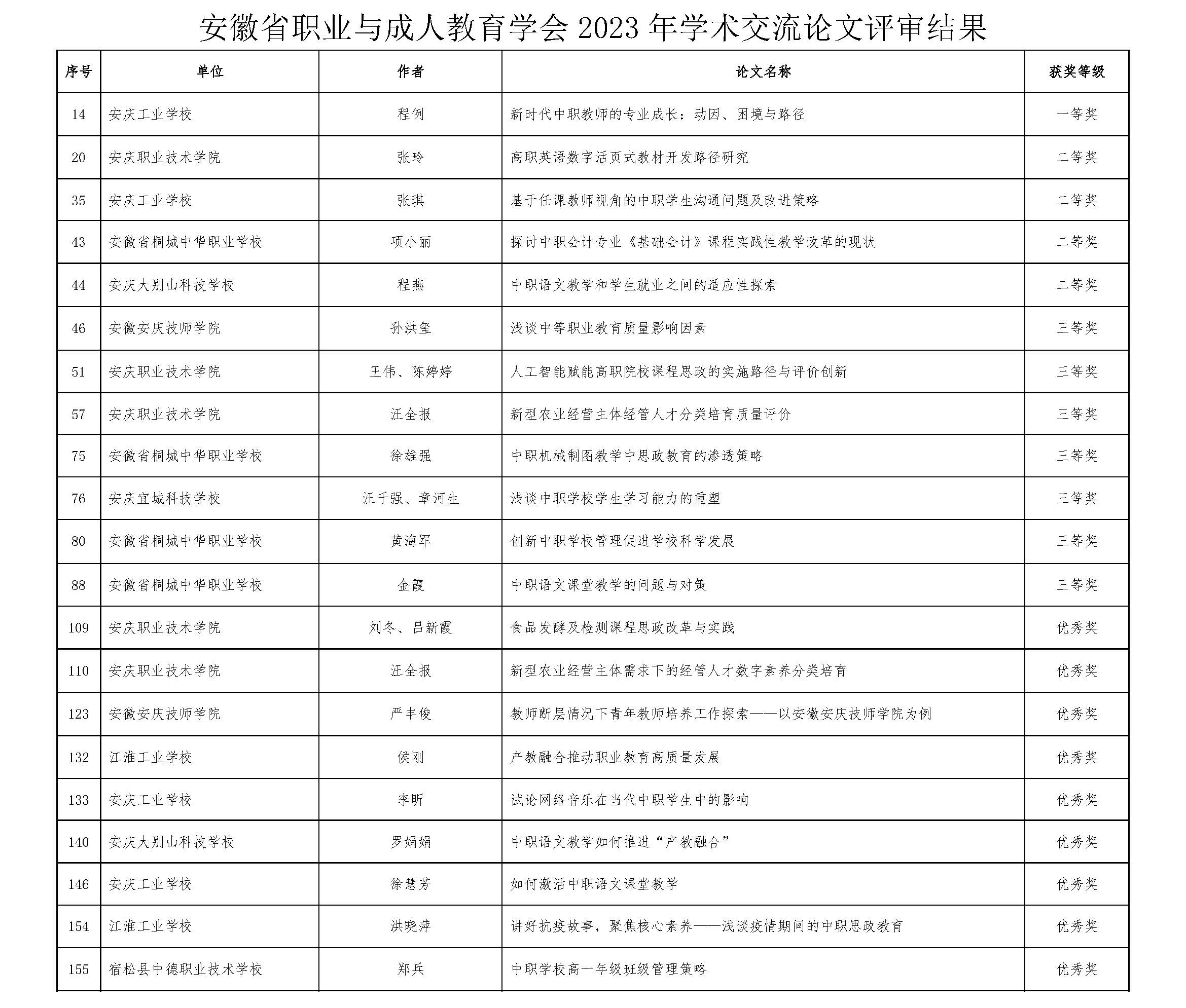 近日,安徽省職業與成人教育學會公布了2023年“中國?安徽職教論壇”交流學術論文和校企合作典型案例獲獎名單,集團9所院校共有21篇論文和8篇典型案例獲獎。(文:葛尹睿 審稿:楊元綱)