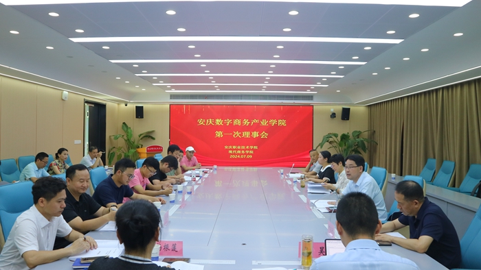 7月9日上午,安慶數字商務產業學院理事會成立大會暨第一屆理事會第一次會議在安慶職業技術學院綜合樓425會議室召開。安慶職院黨委委員、組織部長高潤霞出席并講話。安慶電商行業協會秘書長章春華,安慶跨境電商行業協會會長甘家興、秘書長齊凱,安慶物流行業協會會長胡顯琦、秘書長余鋒民,安徽省產業教授楊根蓮,安徽云霽電商有限公司總經理汪義德,安徽云暢數據科技有限公司吳昊等20余名相關行業企業代表參加會議。安慶職院現代商務學院黨總支書記、院長金啟勝主持會,該學院相關專業建設負責人和教師代表亦參會。