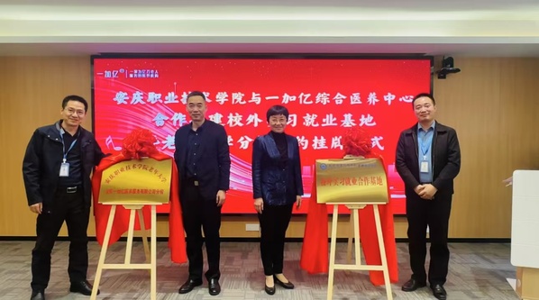 為響應國家實施積極應對人口老齡化戰略,強化職業教育與產業企業需求相對接,積極助力推進老齡事業、老齡產業和養老專業協同發展,10月24日上午,安慶職業技術學院管理服務學院和老年大學與安慶一加億綜合醫養中心,舉行合作共建“安慶職業技術學院管理服務學院一加億校外實習就業基地”和“安慶職業技術學院老年大學一加億分校”簽約活動。安慶職院黨委委員、組織部部長高潤霞、安慶市民政局四級調研員周志遠、安慶一加億醫養服務有限公司法人代表劉林志出席活動,管理服務學院、繼續教育學院相關負責同志及師生代表參加了簽約儀式。
