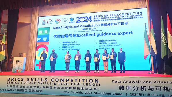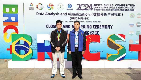 11月4日上午,2024金磚國家職業技能大賽“數據分析與可視化”賽項中國賽區國際總決賽在山東服裝職業學院閉幕。經過兩天的奮勇拼搏,安慶職業技術學院信息技術學院疏國會老師指導的劉珍宏同學獲得一等獎,疏國會獲得優秀指導專家稱號。