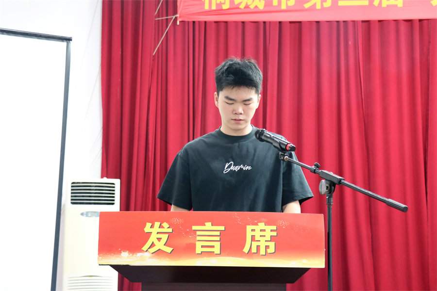 桐城海峽高級技工學校優秀畢業生代表,2023屆智能制造專業高級工班學生,現金科印務公司鍍鋁車間機長柯方鈺,上臺跟同學們分享了他的就業經歷與感悟,他倡議同學們以所學之長投身家鄉建設,在新時代桐城發展的浪潮中,書寫屬于自己的奮斗篇章!