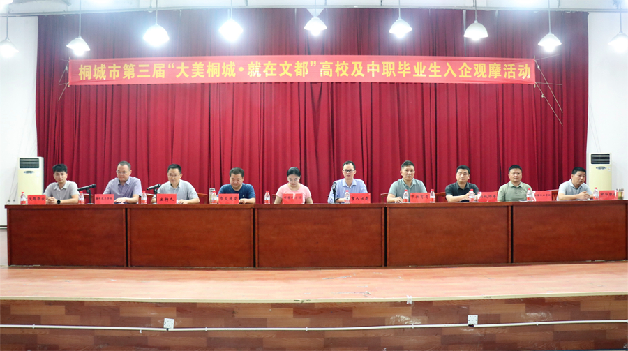 5月30日,桐城市第三屆“大美桐城?就在文都”高校及中職畢業生入企觀摩啟動儀式在桐城海峽高級技工學校隆重舉行。桐城市人力資源和社會保障局、市委人才辦,市教育局,市交通局等部門負責人,以及桐城師范高等專科學校、江淮工業學校、桐城海峽高級技工學校、中華職校、文都職校等四所職(技)校部分師生參加啟動儀式。儀式由市人才綜合服務中心主任章杰主持,市人社局副局長章文斌致辭并宣布活動開始。
