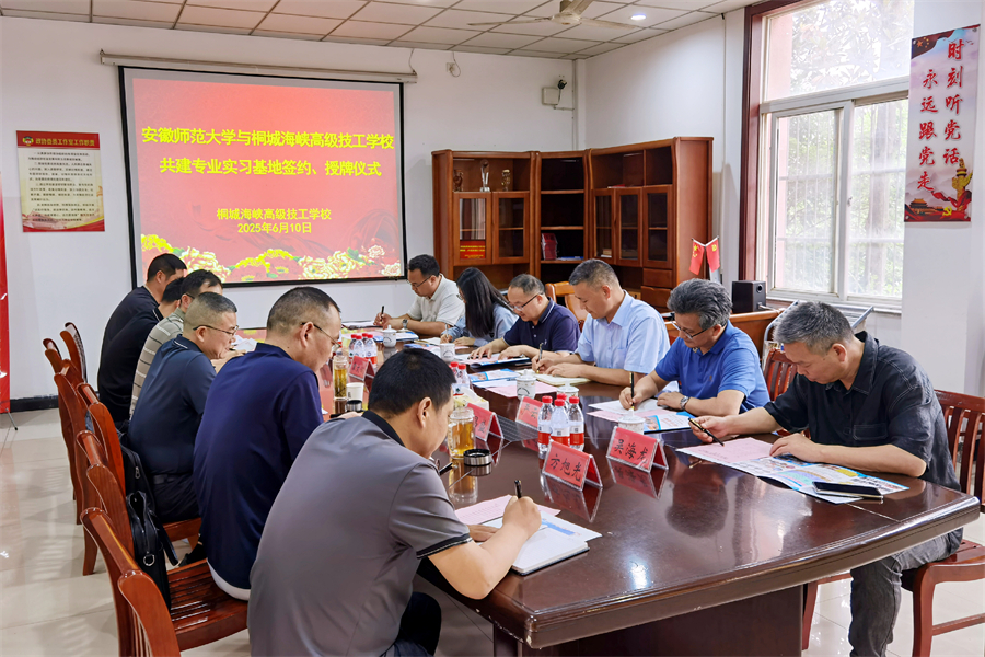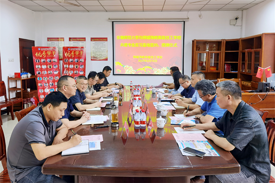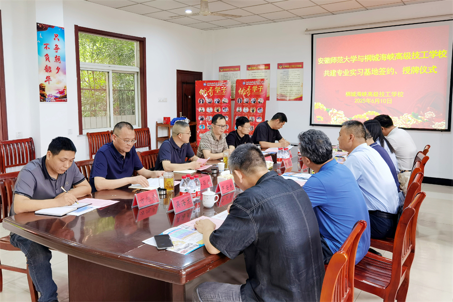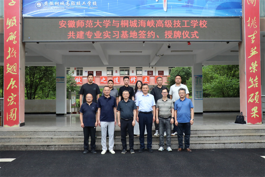 6月10日,安徽師范大學生態與環境學院來桐城海峽高級技工學校,舉行“共建專業實習基地”簽約授牌儀式。安徽師范大學生態與環境學院院長胡好遠,副院長嚴云志、甘為民,桐城市人社局局長李立國,副局長章文斌,桐城海峽高級技工學校校長郭昌盛,副校長孫開運等參加儀式,會議由桐城市人社局副局長章文斌主持。
