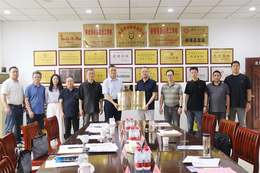 隨后,與會人員參觀了桐城海峽高級技工學校校園環境,以及學生學習、實訓、生活場所。校地雙方還就下一步如何開展深度合作,充分發揮“高校理論優勢+技工院校實踐優勢”,共同培養高素質實用型技能人才,更好服務桐城地方產業發展,進行了深入交流和探討。
