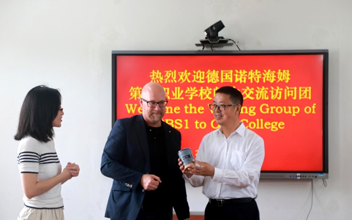 座談會上,李海軍校長對德國師生的到訪表示熱烈歡迎。他回顧了兩校自2009年締結友好關系以來,始終秉持開放包容、互學互鑒的精神,通過學術研討、師生互訪、技術交流等多種形式不斷深化合作,已成為中德職業教育領域交流合作的一個生動縮影。他強調,在中國大力推進職業教育高質量發展、深入實施“職教出海”戰略的背景下,該校高度重視國際化合作,期待雙方進一步拓展在專業共建、師資培養與學生聯合培養等方面的合作空間,共同為中德職教發展貢獻更多務實成果。德國BBS1副校長Tammen Sven在講話中對理工學校的熱情接待表示衷心感謝,同時介紹了德國諾特海姆第一職業學校的發展近況,并提出了深化兩校交流合作的積極展望。會后,雙方還代表兩校互贈了禮物。