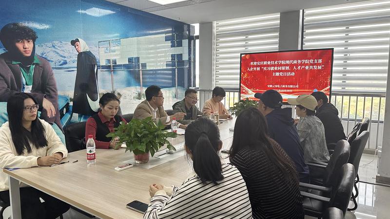 10月28日,安慶職業技術學院現代商務學院黨總支組織部分黨員教師,前往安徽云霽電子商務有限公司,開展“實習就業同謀劃,人才產業共發展”主題黨日活動。