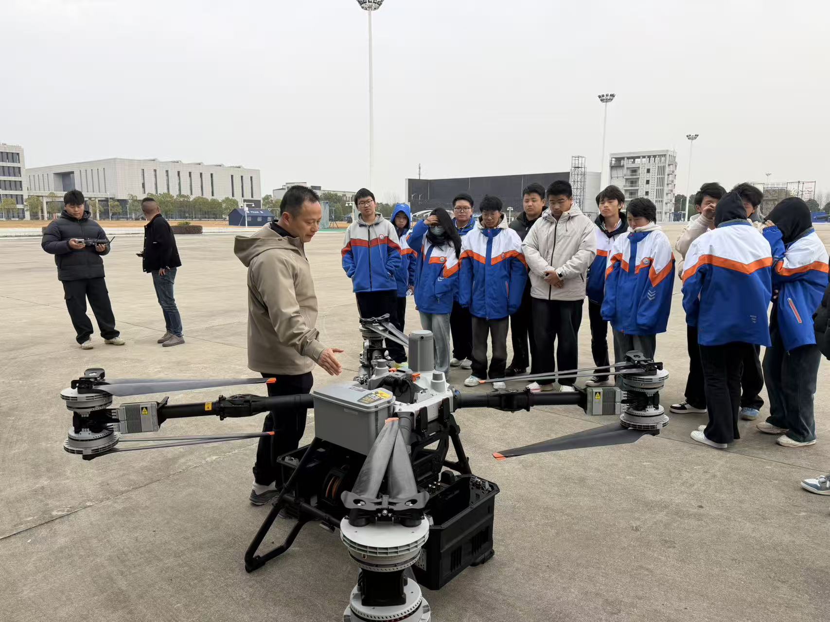 12月12日,太湖職業技術學校組織2025級無人機專業師生走進大疆行業應用、北斗智航公司,開展一場理論性與實操性的“無人機+行業應用”實踐教學活動,沉浸式解鎖“無人機+”前沿科技教學。學校政教處主任方明華率隊,無人機專業班主任萬家兵、相關專業課教師、以及無人機專業班級學生30余名師生代表參加活動。